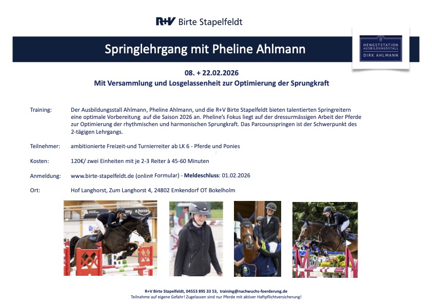 08. + 22.02.2026 | Pheline Ahlmann - Springlehrgang | |