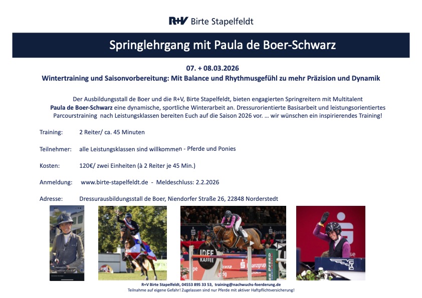 07. + 08.03.2026 | Springlehrgang mit Paula de Boer-Schwarz | |